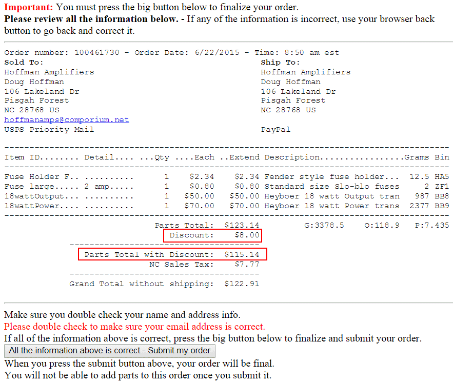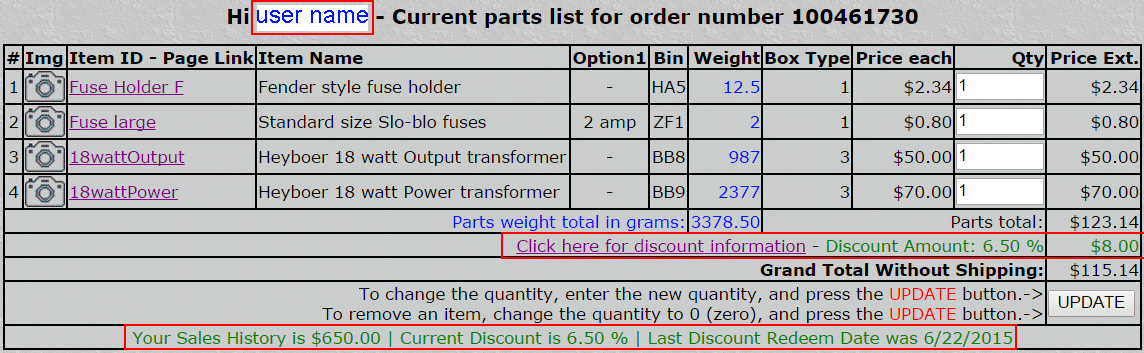 The parts total with your discount subtracted is shown
